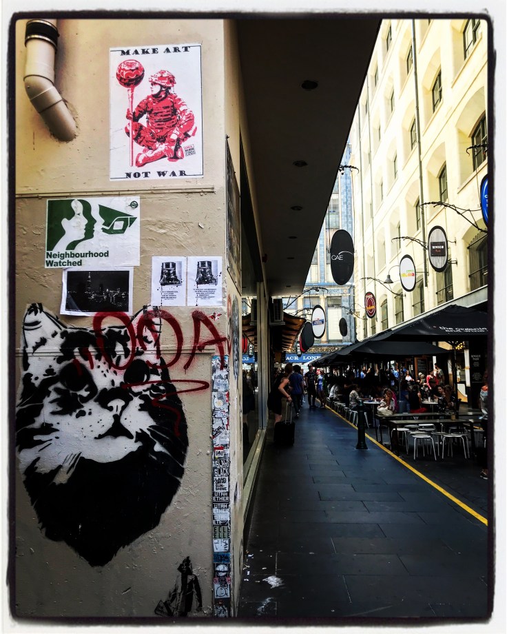 Melbourne has beautiful buildings, several gorgeous cathedrals, but like any major city there are some run-down areas as well. Quite a few street artist’s taking advantage of unpainted walls which I took a couple photos of.