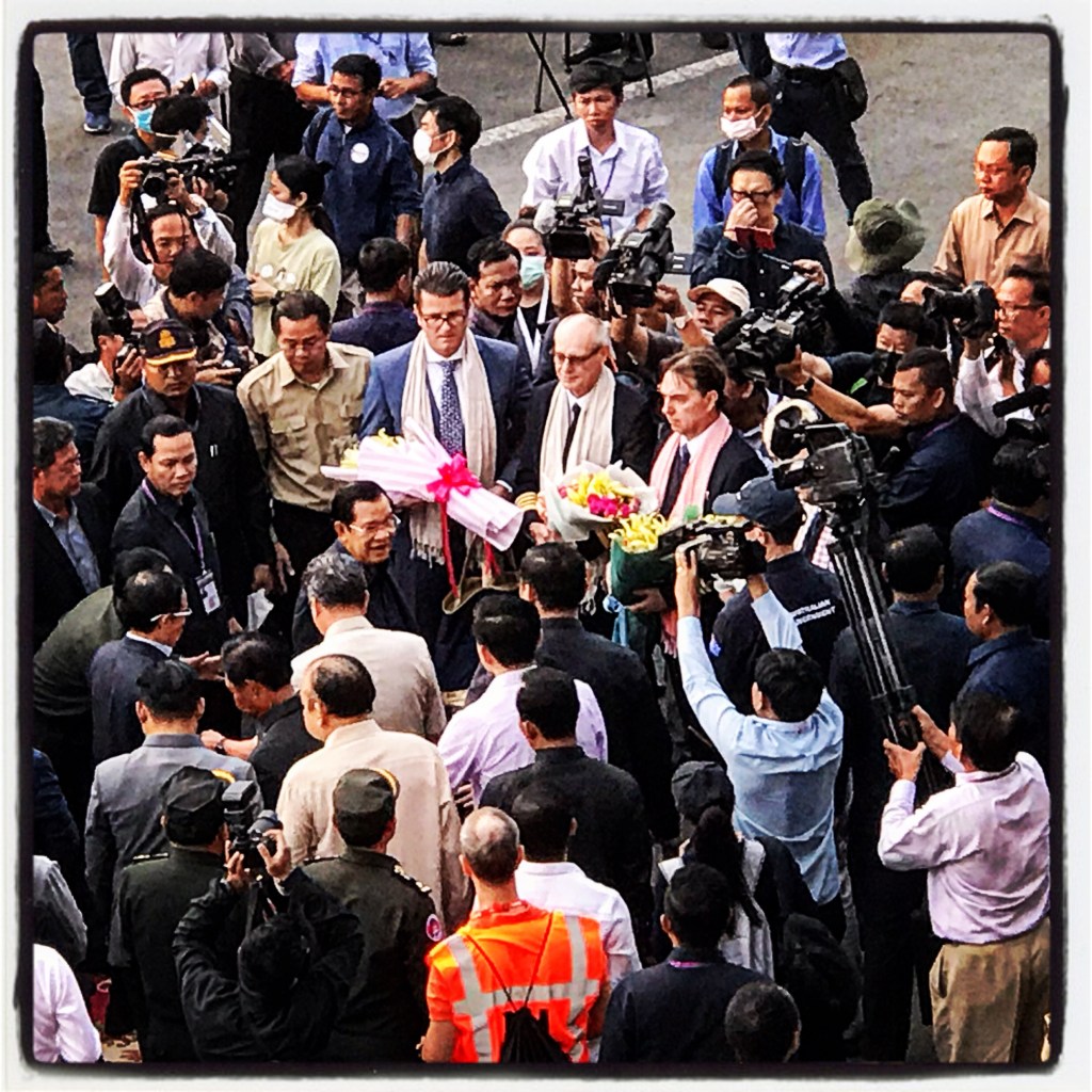 The PRIME MINISTER OF CAMBODIA is coming to greet the Westerdam and our first passengers off the ship! THIS IS A BIG DEAL, as one can imagine. The Kingdom of Cambodia is the hero in this complicated, frustrating, and disappointing (I’m still a little bent about Guam) world-wide scenario. One dock worker, in very broken English, yelled up to us, “We want you!” Or perhaps he was telling me that my rent was due. I’m not sure, but it was sweet nonetheless.