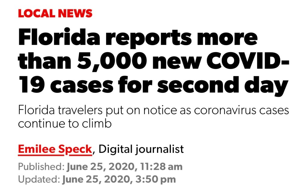 As of today, Florida had 10,000 NEW COVID-19 CASES IN TWO DAYS! Their governor is an idiot! No face masks required.