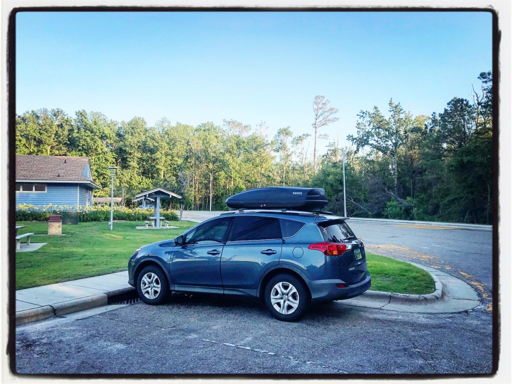 I put the mosquito nets over all 4 car windows, rolled them down and although no bugs get through, neither does much air. By 10:30 pm I had worked myself up into a frustrated sweaty state and somehow a few of those pesky mosquitoes made their way inside. I finally gave up on laying down in the back, opened the rear driver door, which is my escape hatch, slipped in the mud, and fought through the mosquitoes until I got into the driver seat. I readjusted the seats, started the car, flipped the car’s air-conditioning on blast -and keep in mind it’s a campground where everyone’s asleep. I didn’t wanna run the car too long but I had to have some cool air. I looked at the outside temperature on my dash. 93. Yeah, 93 degrees at nearly 11pm. What was it inside my car? Enough to melt my vitamin C gummies into one massive orange sugary blob.