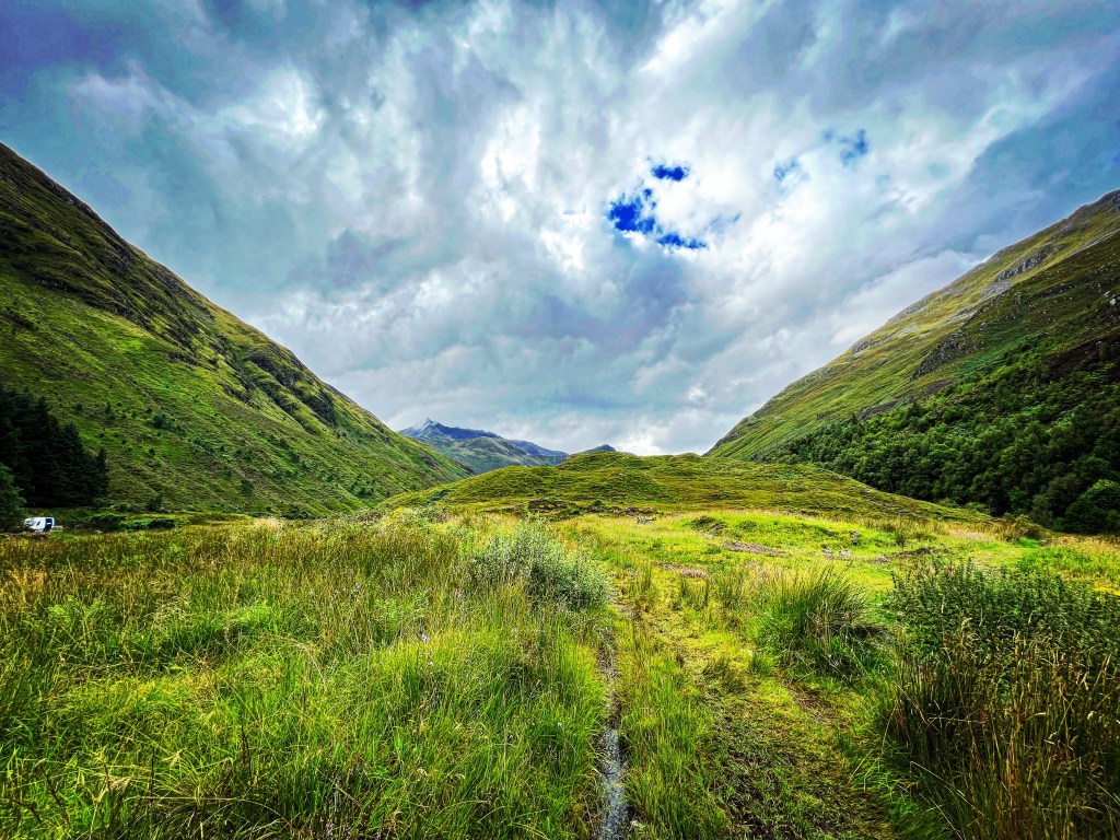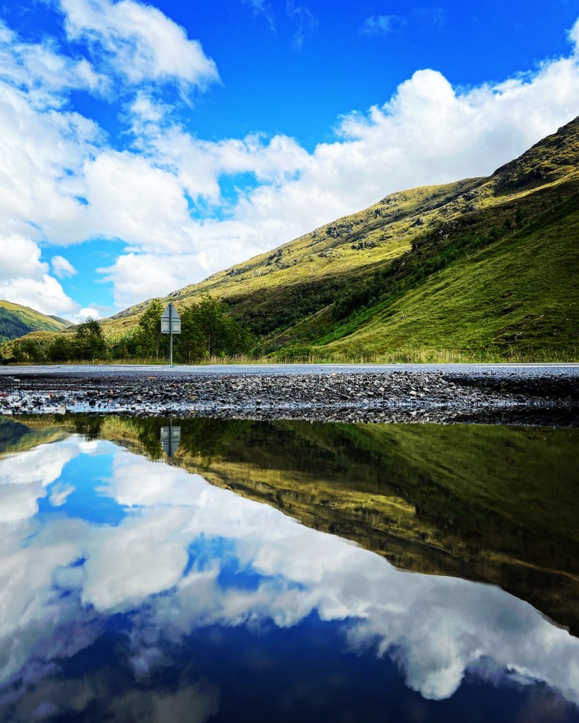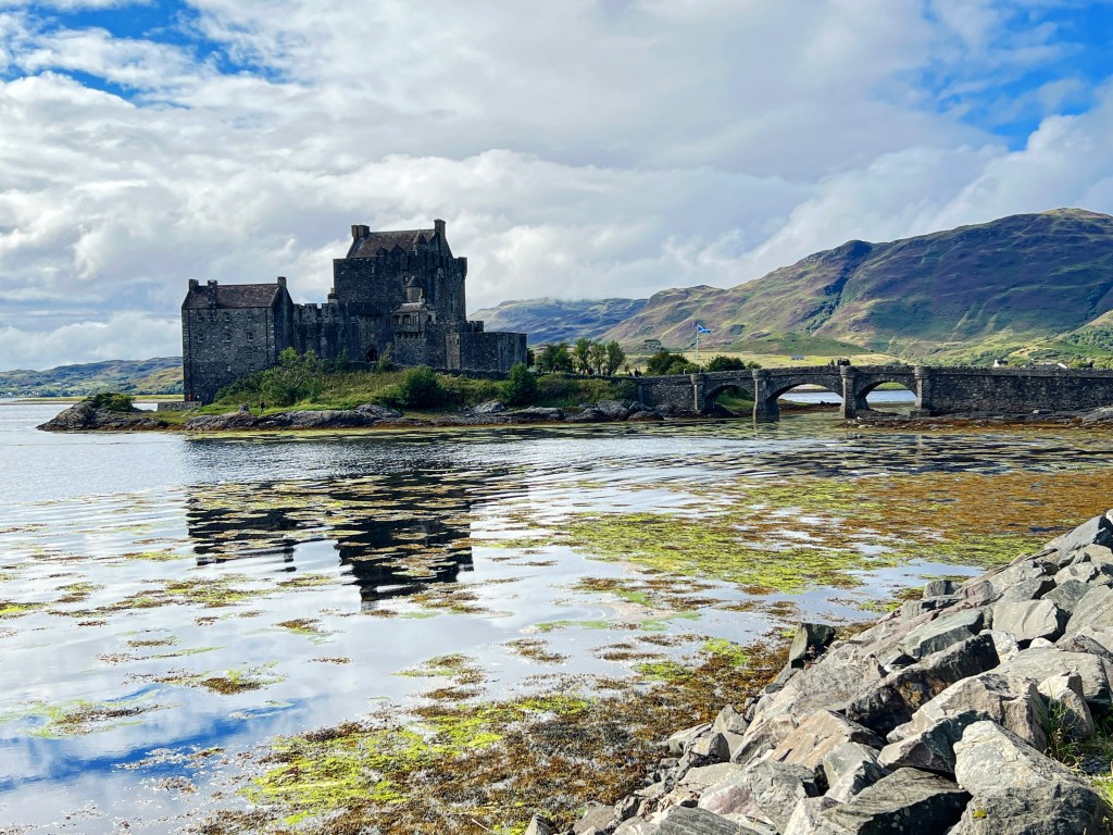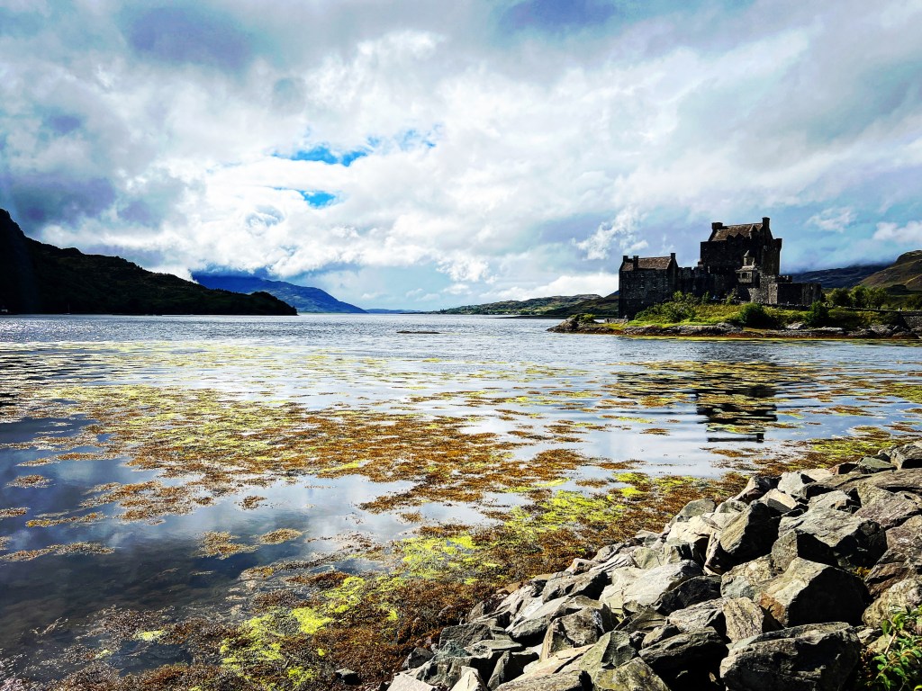 My home for the night. A beautiful Caravan site right on the coastFrom the inside of my warm and dry carI made a valiant attempt to cross this inlet to the island To find the lighthouse on the far side – but never made it. I blame the tide coming in and not the fact that I was exhausted an hour into the sandy, rocky, and freezing walk. (Seriously, the tide was coming in fast)Oban harborOn the drive north to the isle of SkyeEileen Donan castle